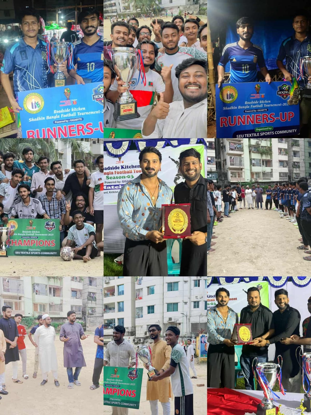 নিউজ ডেস্ক : Powered by Gigabyte, আয়োজনে Southeast University Textile Sports Community—ঢাকার খিলখেতের A & A MS গ্রাউন্ডে ১৯ সেপ্টেম্বর ২০২৫ অনুষ্ঠিত হলো বহুল প্রতীক্ষিত “Roadside Kitchen Shadhin Bangla Football Tournament – Season 3”. বিশ্ববিদ্যালয়ের বিভিন্ন বিভাগ থেকে মোট ২৪টি দল অংশগ্রহণ করে টুর্নামেন্টটিকে করে তোলে আরও প্রাণবন্ত ও প্রতিযোগিতামূলক।