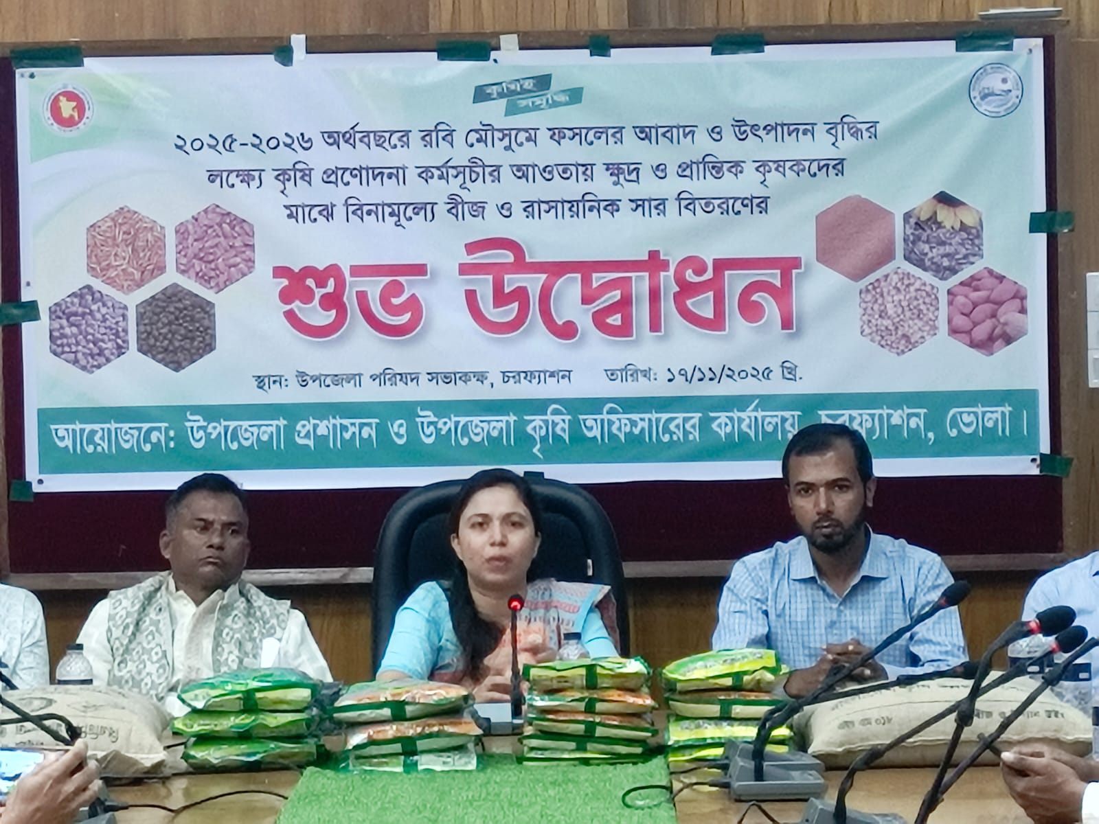 চরফ্যাশনে ২০২৫ - ২০২৬ অর্থবছরে রবি মৌসুমে ফসলের আবাদ ও উৎপাদন বৃদ্ধির লক্ষে কৃষি প্রণোদনা কর্মসূচির আওতায় ক্ষুদ্র ও প্রান্তিক কৃষকদের মাঝে বিনামূল্যে বীজ ও রাসায়নিক সার বিতরন বিতরণ করা হয়েছে।