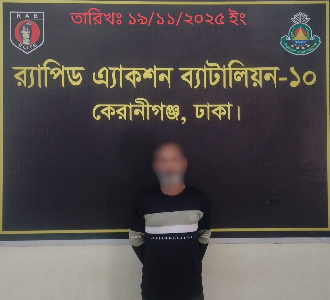আসিফ চৌধুরী, বিশেষ সংবাদদাতা ঢাকা : ঢাকার কেরাণীগঞ্জে দস্যুতা মামলার অন্যতম আসামি মো. শুক্কুর আলী (৩৯)–কে গ্রেপ্তার করেছে র্যাপিড অ্যাকশন ব্যাটালিয়ন (র্যাব)–১০। আজ বুধবার (১৯ নভেম্বর) দুপুরে দক্ষিণ কেরাণীগঞ্জের শুভ্যাঢা এলাকা থেকে তাঁকে আটক করা হয়।