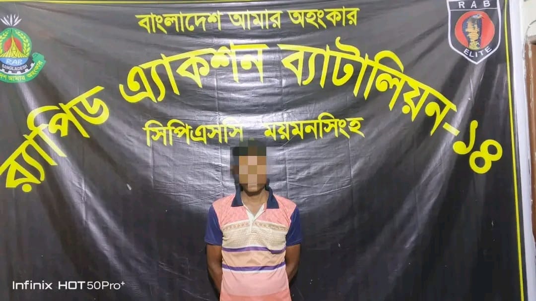ময়মনসিংহ সিপিএসসি, র্যাব-১৪, এর আভিযানিক দল আজ ২০ নভেম্বর বৃহস্পতিবার ২০২৫ খ্রি. দুপুর অনুমান ১২:০০ ঘটিকায় গোপন সংবাদের ভিত্তিতে ময়মনসিংহ জেলার কোতোয়ালী থানা এলাকায় অভিযান পরিচালনা করে ময়মনসিংহ জেলার কোতোয়ালী থানার মাদক মামলা নং-২৪, তারিখ-২০ মে ২০২১, জিআর নং-১৫৬/২১, প্রসেস-২৭৫/২৫, ধারা- ২০১৮ সালের মাদক দ্রব্য নিয়ন্ত্রণ আইনের ৩৬(১) এর ৮(ক)/৪ মোতাবেক ০১ (এক) বছরের সাজাপ্রাপ্ত ওয়ারেন্টভুক্ত পলাতক আসামী মোঃ ফারুক মিয়া (৩৫), পিতা-ইদ্রিস আলী, সাং-পাড়াইল, থানা- কোতোয়ালী, জেলা-ময়মনসিংহ’কে গ্রেফতার করতে সক্ষম হয়।