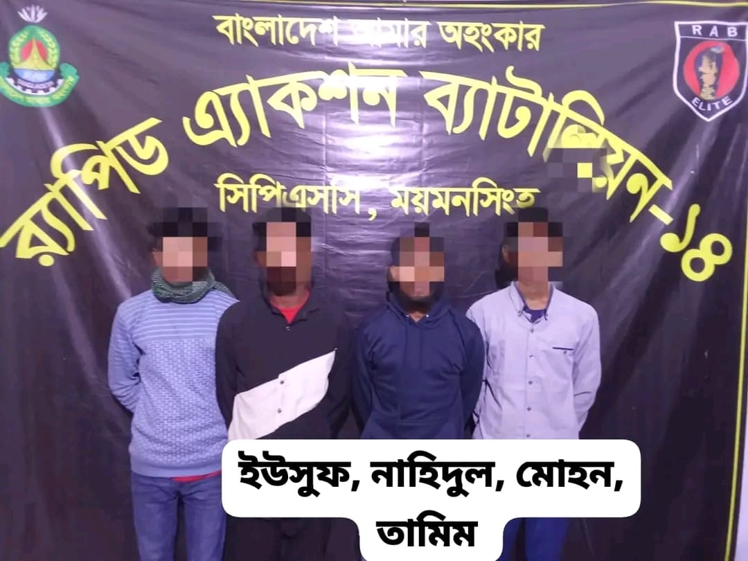 ময়মনসিংহ র‍্যাব ১৪ কর্তৃক অভিযানে গাজাসহ মাদক কারবারি গ্রেফতার ০৪