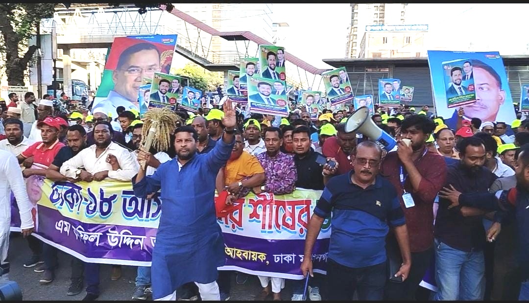 ঢাকা ১৮ আসনে বিএনপির গণমিছিলে এম কফিল উদ্দিন আহমেদের বিশাল শোডাউন