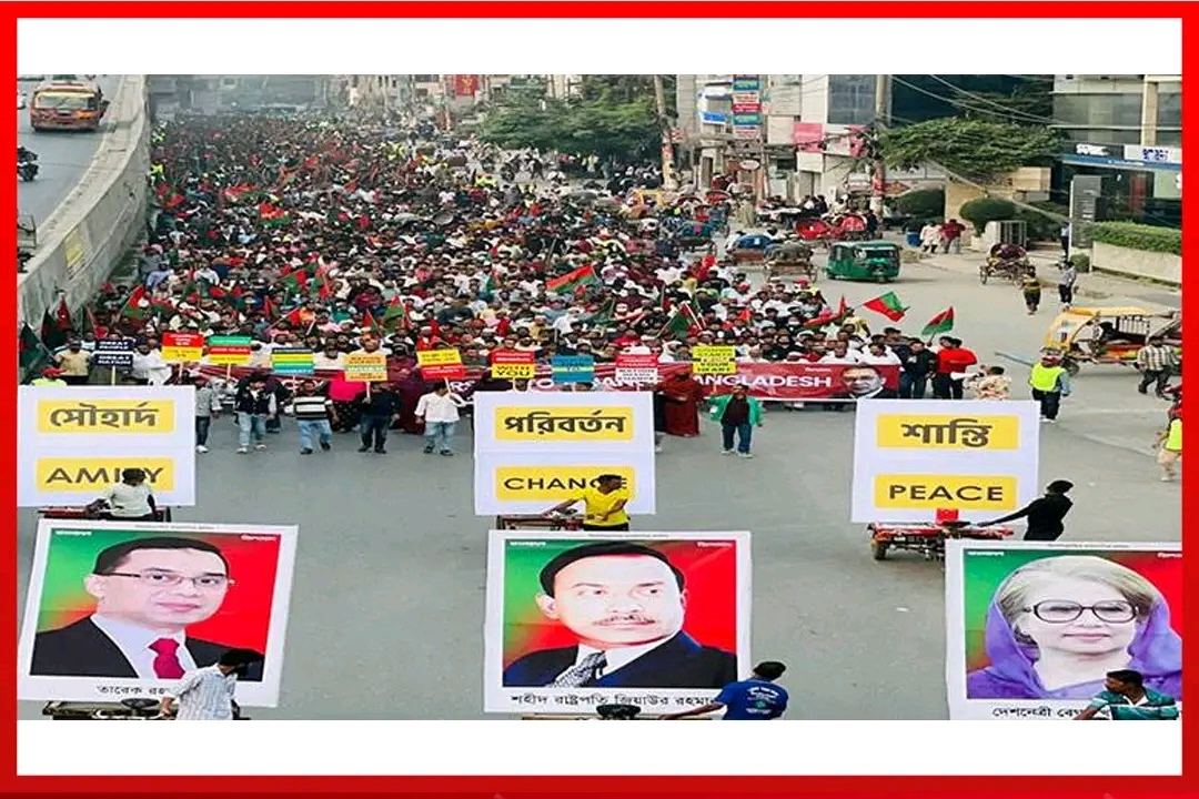বিএনপি ও বাংলাদেশ জাতীয় পতাকায় সজ্জিত এই মিছিলে কয়েক হাজার নেতা-কর্মীর উপস্থিতিতে এলাকা উৎসবমুখর হয়ে ওঠে।