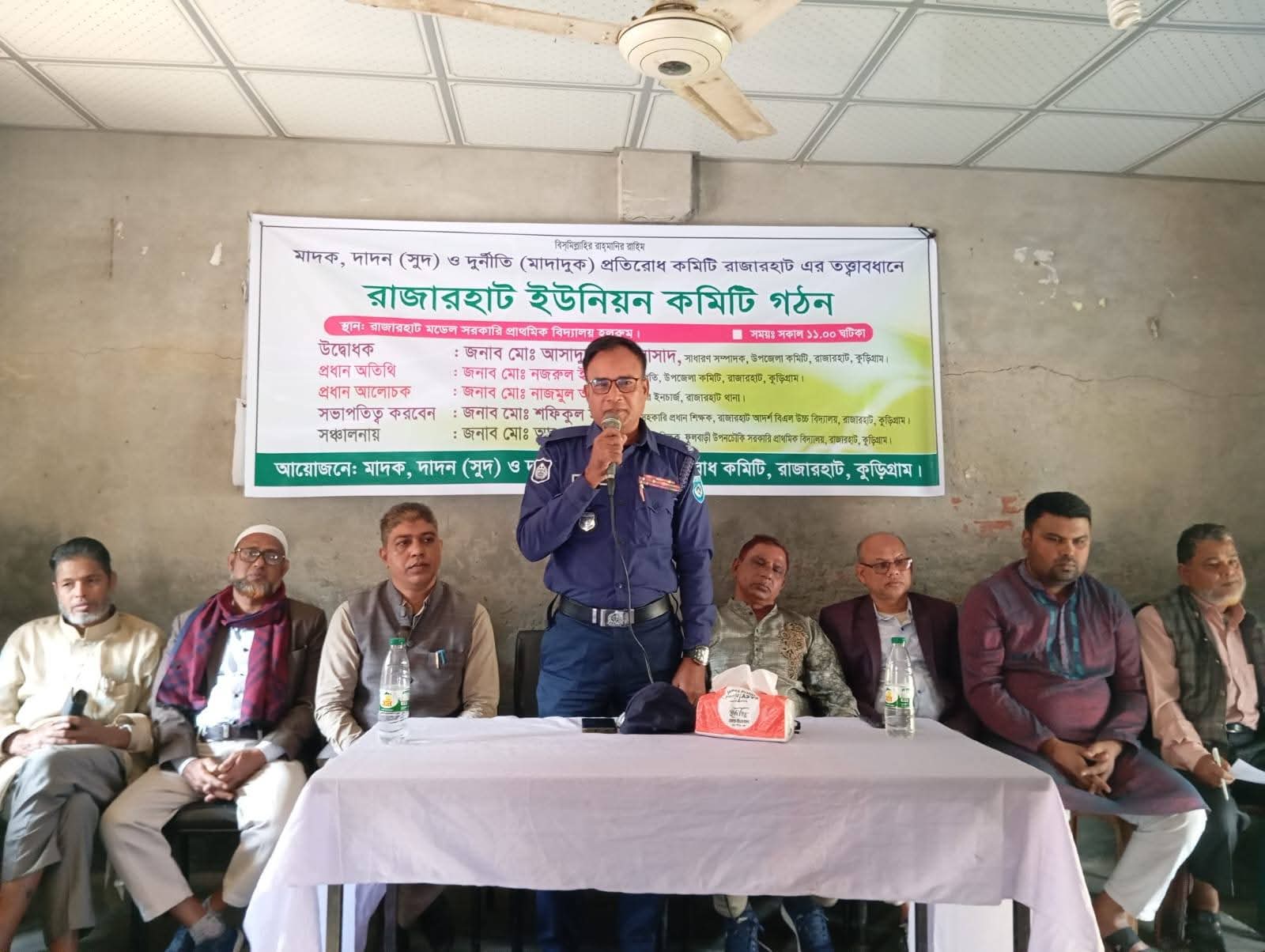 স্টাফ রিপোর্টার,মোঃ রেজাউল হক কুড়িগ্রামঃ রাজারহাট সদর ইউনিয়নে মাদক,দাদন ও দুর্নীতি প্রতিরোধ কমিটি গঠিত হয়েছে । শনিবার উপজেলার রাজারহাট মডেল সরকারি প্রাথমিক বিদ্যালয় হলরুমে এই সভা অনুষ্ঠিত হয়।