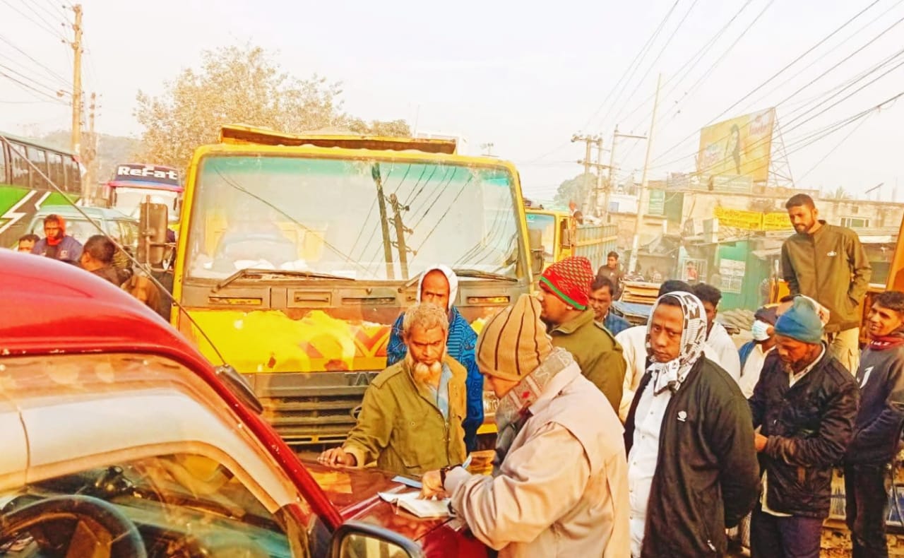 আউয়াল হোসাইন (টাঙ্গাইল):টাঙ্গাইলের ভূঞাপুরে খোলা ও ঝুঁকিপূর্ণভাবে বালু পরিবহনের দায়ে এক চালককে অর্থদণ্ড প্রদান করেছে উপজেলা প্রশাসন। এর মাধ্যমে খোলা বালু পরিবহনের বিরুদ্ধে কঠোর অবস্থানের বার্তা দিয়েছে স্থানীয় প্রশাসন। বুধবার (৩ ডিসেম্বর) সকাল সাড়ে সাতটার দিকে ভূঞাপুর পৌর শহরের বাসস্ট্যান্ড এলাকায় উপজেলা পরিষদ সংলগ্ন স্থানে ড্রাইভিং লাইসেন্স ও প্রয়োজনীয় কাগজপত্র ছাড়াই খোলা অবস্থায় ঝুঁকিপূর্ণভাবে বালু বহনের দায়ে চালক আয়নালকে ‘সড়ক পরিবহন আইন, ২০১৮’-এর আওতায় ৫ হাজার টাকা জরিমানা করা হয়। অভিযানের পর প্রশাসন জানিয়েছে, অস্বাস্থ্যকর ও বিপজ্জনক পরিবহন ব্যবস্থার বিরুদ্ধে নজরদারি আরও জোরদার করা হয়েছে। স্থানীয়দের অভিযোগ, খোলা বালু বহনের কারণে সড়কে ধুলার প্রাদুর্ভাব বাড়ছে, তৈরি হচ্ছে দুর্ঘটনার ঝুঁকি এবং পরিবেশ দূষণও বৃদ্ধি পাচ্ছে।