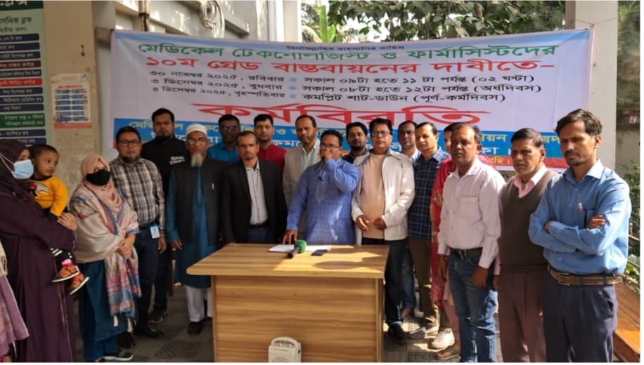 “সকল ডিপ্লোমাধারী পেশাজীবীরা দশম গ্রেড পেলেও মেডিকেল টেকনোলজিস্ট ও ফার্মাসিস্টরা এখনো একাদশ গ্রেডে রয়েছেন। এটি পেশার প্রতি অবমূল্যায়ন।”