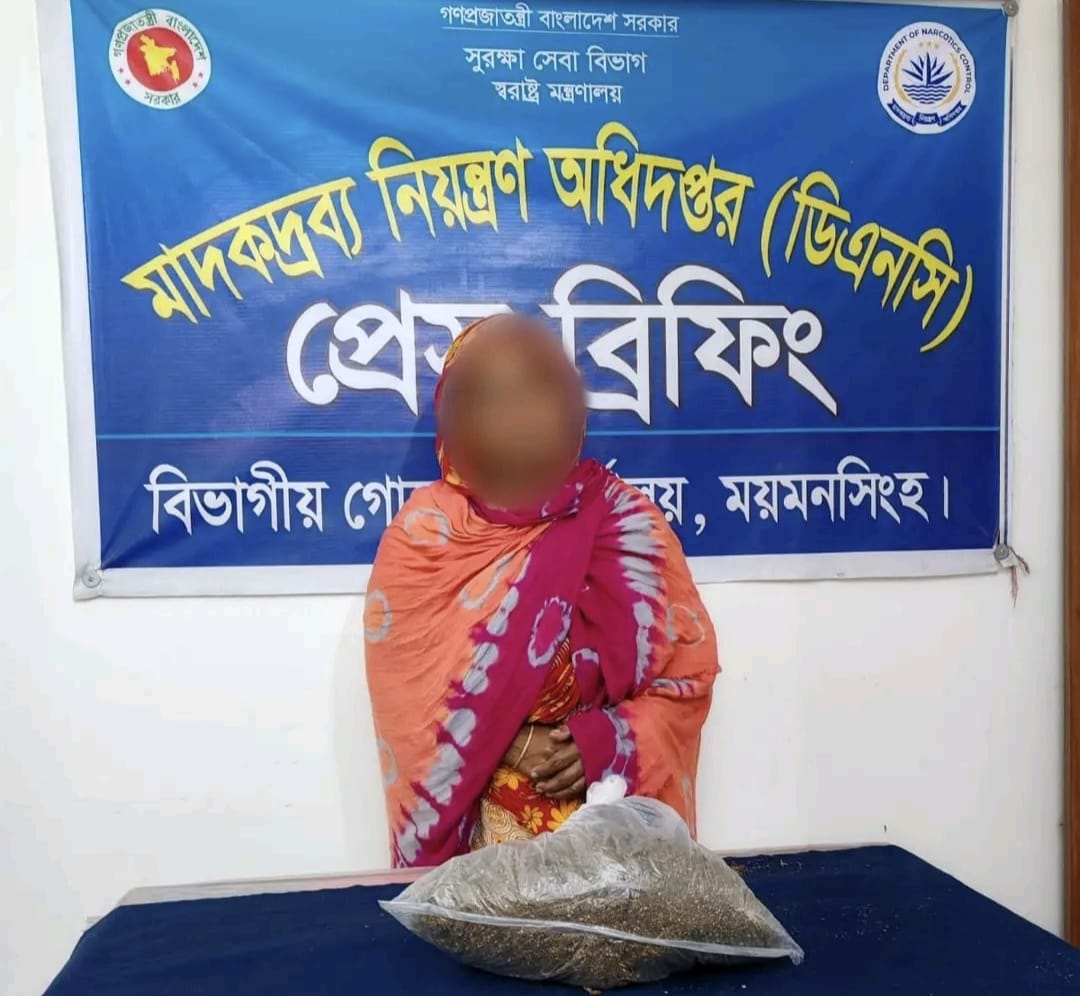 ময়মনসিংহে ৫০০ গ্রাম গাঁজা ও টাকাসহ ১ মহিলা গ্রেফতার