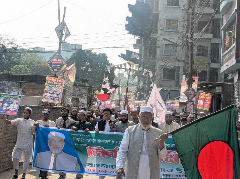 উত্তরা প্রতিনিধি : রাজধানীর উত্তরখান থানার উদ্যোগে ০৫ ডিসেম্বর রোজা শুক্রবার এক বর্ণাঢ্য নির্বাচনী গণ মিছিল অনুষ্ঠিত হয়েছে। সকাল থেকেই বিভিন্ন ওয়ার্ডের নেতাকর্মী ও সাধারণ জনগণের অংশগ্রহণে এলাকাজুড়ে উৎসবমুখর পরিবেশ সৃষ্টি হয়। আসন্ন জাতীয় সংসদ নির্বাচনে ঢাকা–১৮ আসনের বাংলাদেশ জামায়াতে ইসলামী মনোনীত এমপি প্রার্থী বিশিষ্ট সমাজসেবক ও শিক্ষাবিদ অধ্যক্ষ আশরাফুল হকের প্রতি সাধারণ মানুষের ব্যাপক সমর্থন এ আয়োজনকে আরও প্রাণবন্ত করে তোলে।
