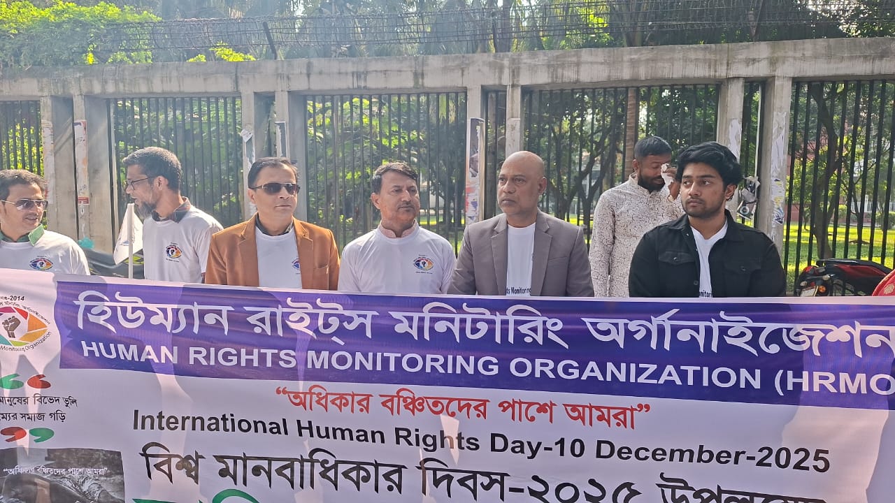 ঢাকা, ১০ ডিসেম্বর ২০২৫ : বিশ্ব মানবাধিকার দিবস ২০২৫ উপলক্ষে হিউম্যান রাইটস মনিটরিং অর্গানাইজেশনের উদ্যোগে রাজধানীতে র্যালি ও আলোচনা সভা অনুষ্ঠিত হয়েছে। মানবাধিকার সুরক্ষা, ন্যায়বিচার প্রতিষ্ঠা এবং সামাজিক সচেতনতা বৃদ্ধিতে সংগঠনের এ উদ্যোগ উপস্থিত সবার প্রশংসা কুড়ায়।