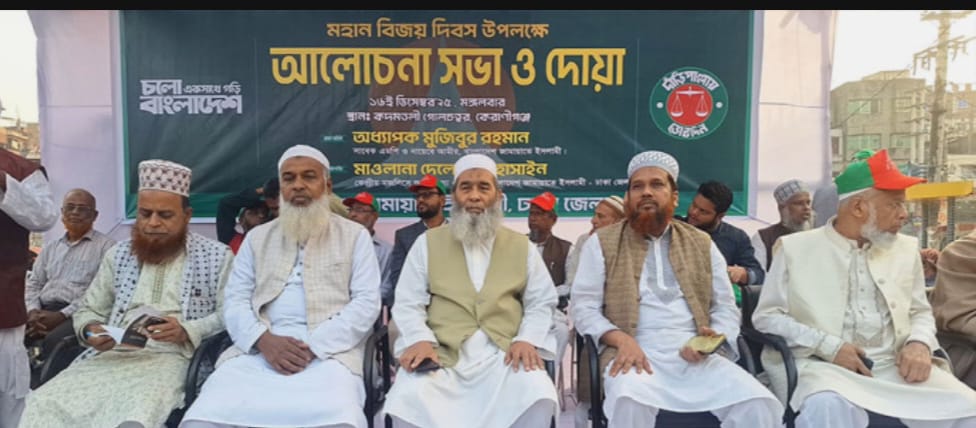 আসিফ চৌধুরী, বিশেষ সংবাদদাতা( ঢাকা): মহান বিজয় দিবস উপলক্ষে “বাংলাদেশ” শীর্ষক আলোচনা সভা ও দোয়া মাহফিলের আয়োজন করেছে বাংলাদেশ জামায়াতে ইসলামী। মঙ্গলবার (১৬ ডিসেম্বর) বিকেলে কেরাণীগঞ্জের কদমতলী গোলচত্বরে এ কর্মসূচি অনুষ্ঠিত হয়।