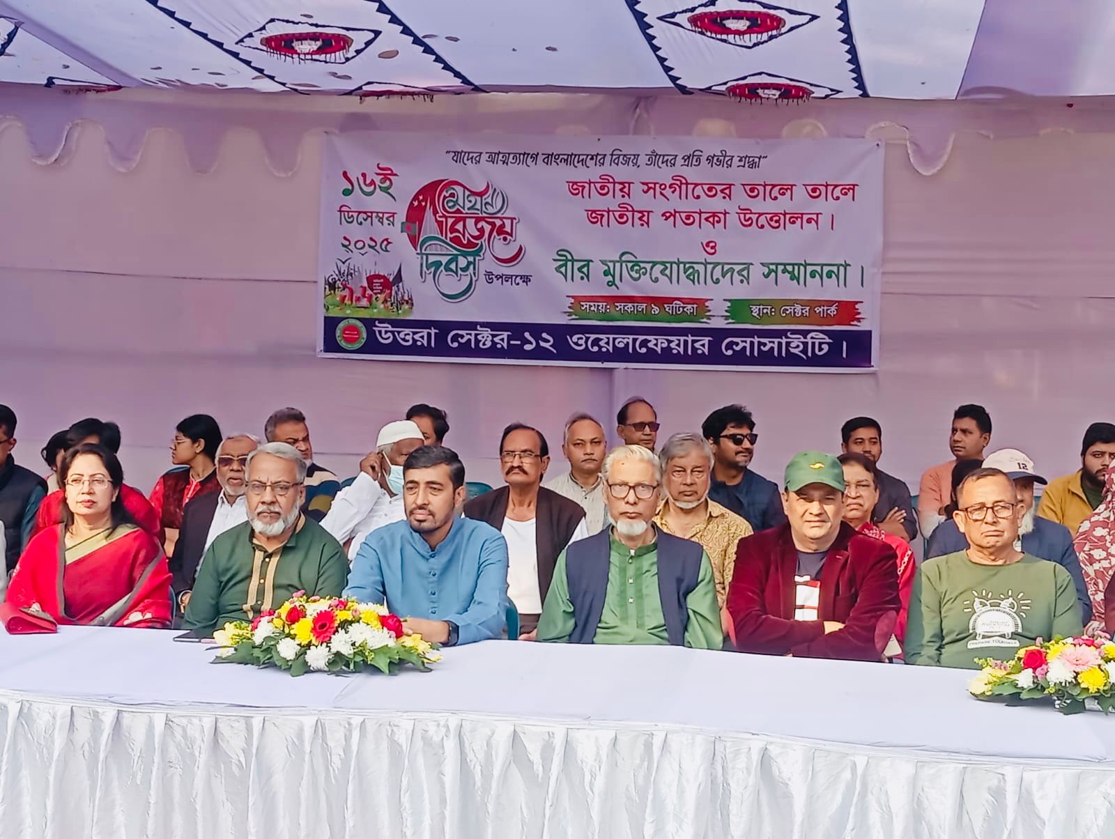 উত্তরা প্রতিনিধি:মহান বিজয় দিবস উপলক্ষে রাজধানীর উত্তরা ১২ নম্বর সেক্টর ওয়েলফেয়ার সোসাইটির উদ্যোগে বর্ণাঢ্য ও মর্যাদাপূর্ণ কর্মসূচির আয়োজন করা হয়েছে।