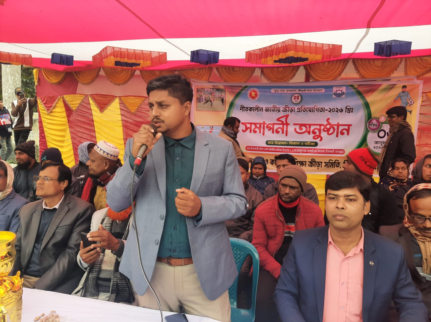 মঙ্গলবার (৬জানুযারী) বিকাল ৪ টায় উপজেলা এ,কে ফয়জুল হক সরকারি প্রাথমিক বিদ্যালয়ে মাঠে ৫৪তম জাতীয় শীতকালীন ক্রীড়া প্রতিযোগিতা সমাপনী ও পুরস্কার বিতরণ অনুষ্ঠানে প্রধান অতিথি হিসেবে বক্তব্য রাখেন উপজেলা সহকারী কমিশনার( ভুমি) মিঠুন মৈত্র।