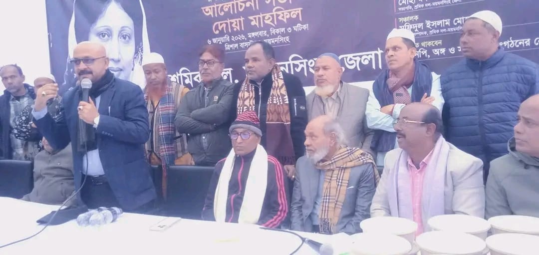 মকবুল হোসেন, ময়মনসিংহ জেলা প্রতিনিধি: ময়মনসিংহ জেলা শ্রমিক দল আয়োজিত বিএনপির চেয়ারপার্সন সাবেক প্রধানমন্ত্রী দেশনেত্রী বেগম খালেদা জিয়ার রুহের মাগফেরাত কামনায় আলোচনা সভা অনুষ্ঠিত হয়।