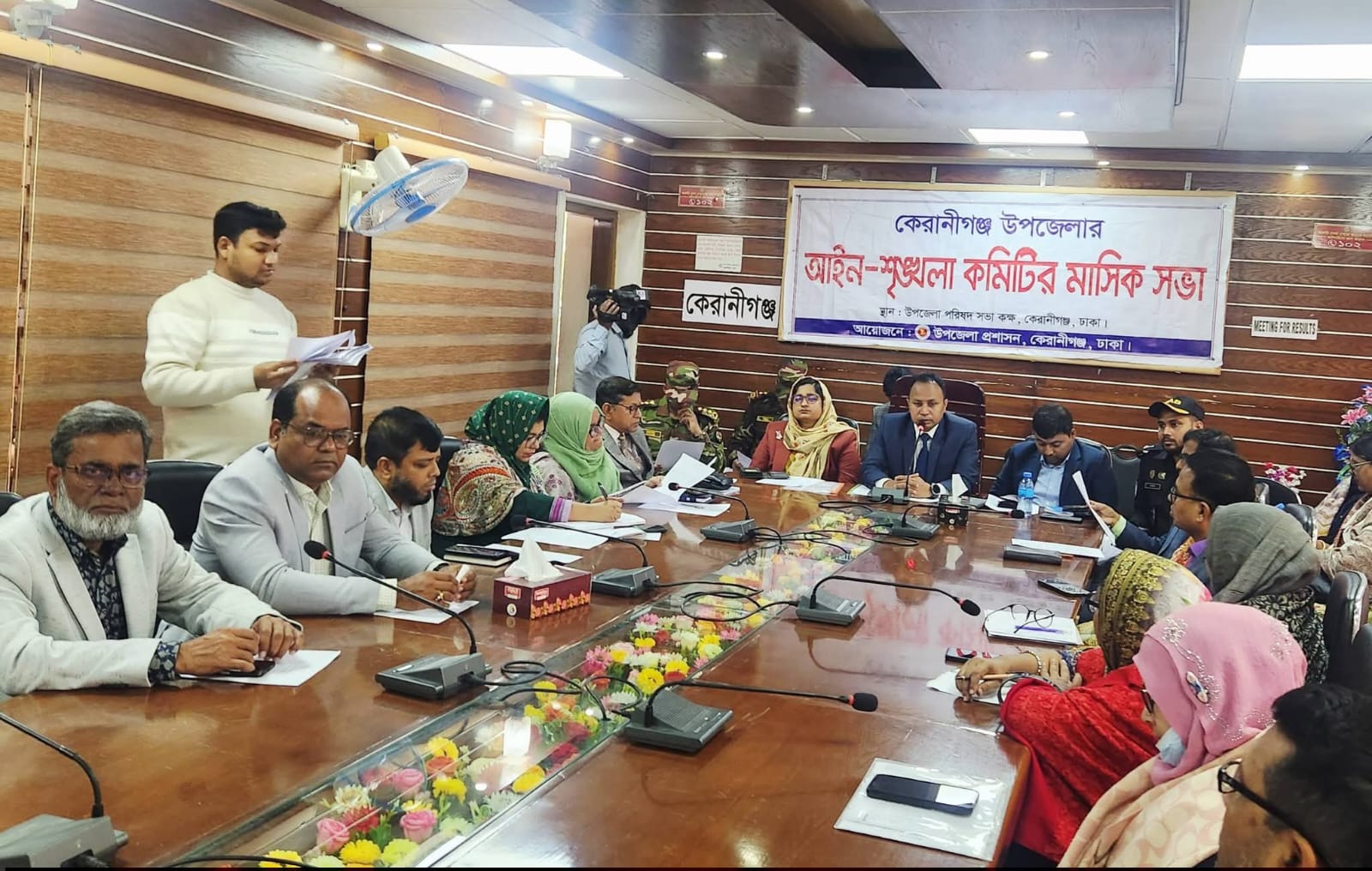 কেরানীগঞ্জে আইনশৃঙ্খলা কমিটির মাসিক সভা ভোটকেন্দ্রে সিসি ক্যামেরা ও নিরাপত্তা জোরদারের সিদ্ধান্ত