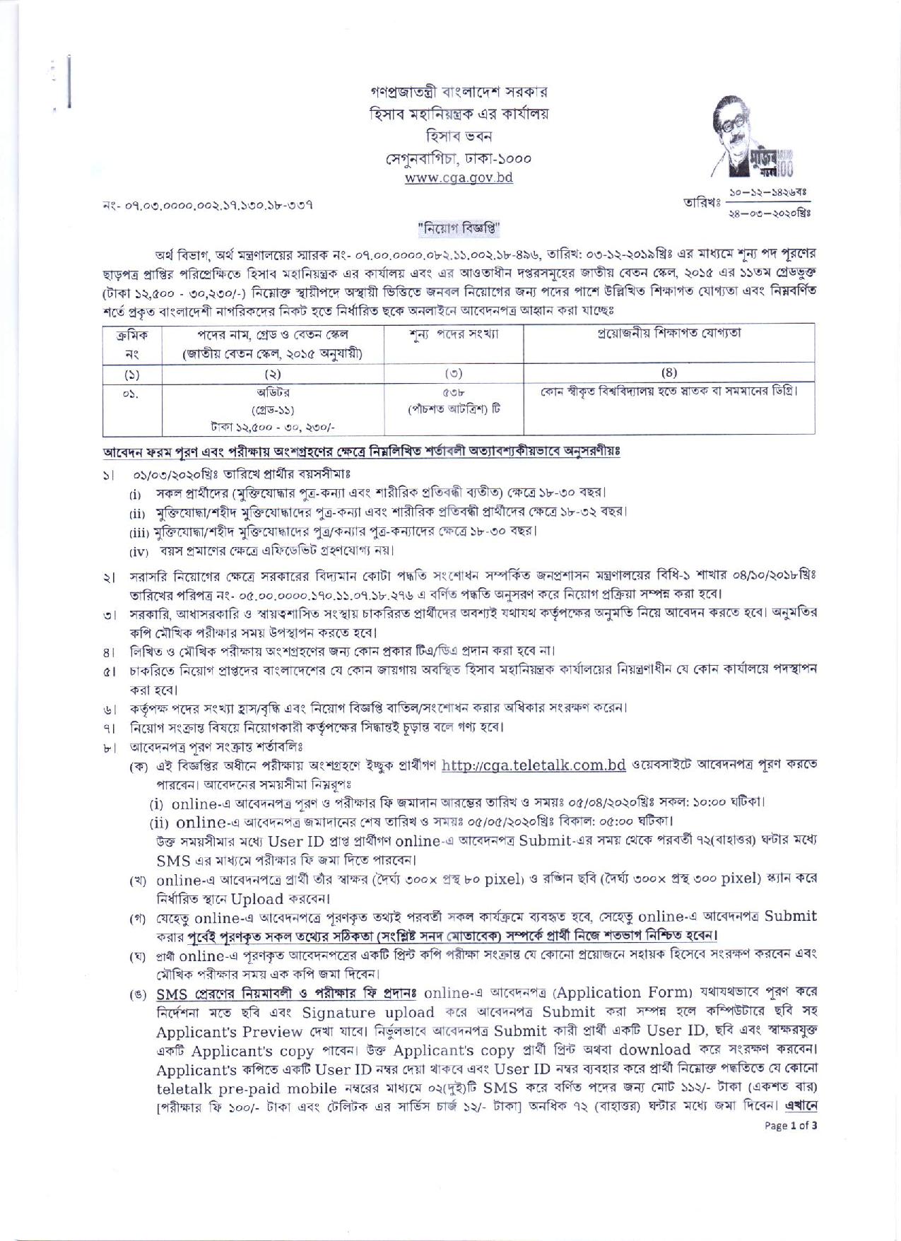 হিসাব মহানিয়ন্ত্রকের কার্যালয় (CGA), পদ সংখ্যাঃ ১,৯০১ টি।