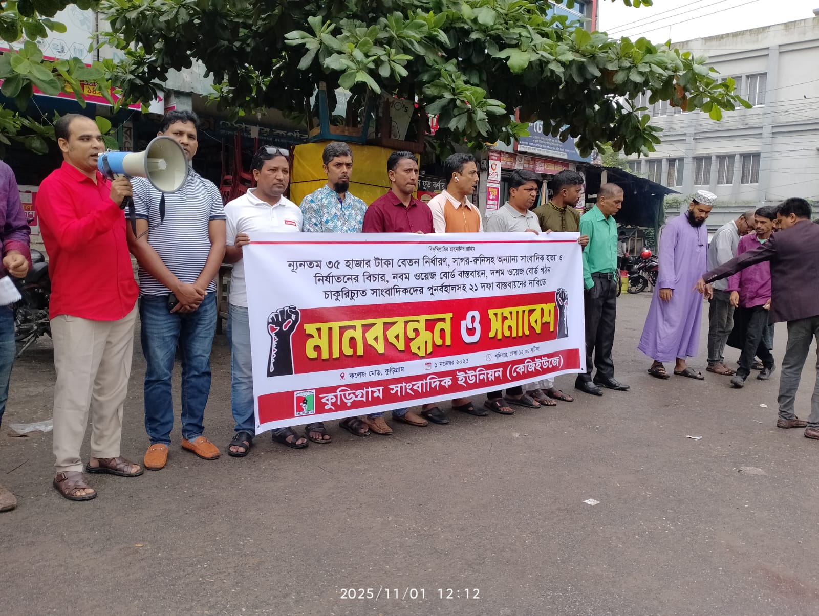 কুড়িগ্রামে ২১ দফা দাবিতে সাংবাদিকদের সমাবেশ ও মানববন্ধন