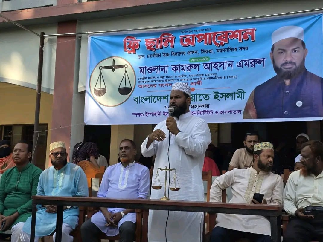 মকবুল হোসেন, ময়মনসিংহ জেলা প্রতিনিধি: ময়মনসিংহ সদরের চরখরিচা উচ্চ বিদ্যালয় প্রাঙ্গণে বাংলাদেশ জামায়াতে ইসলামী মনোনীত ময়মনসিংহ -৪ (সদর) আসনের সংসদ সদস্য প্রার্থী মাওলানা কামরুল আহসান এমরুল এর উদ্যোগে আজ ৯ নভেম্বর রবিবার বেলা ১২ ঘটিকায় ফ্রি চক্ষু ছানি অপারেশন ক্যাম্প সম্পন্ন হয়েছে। ইস্পাহানি ইসলামিয়া চক্ষু ইনস্টিটিউট ও হাসপাতাল, জামালপুর শাখার সহযোগিতায় দিনব্যাপী এই ফ্রি ক্যাম্পে প্রায় ৫০০ এর মত রোগীর চিকিৎসা সেবা প্রদান করা হয়। প্রয়োজন অনুযায়ী শতাধিক রোগীকে ফ্রিতে চশমা বিতরণ করা হয়। প্রায় অর্ধশত রোগীকে ছানি অপারেশন এর জন্য ইস্পাহানি ইসলামিয়া চক্ষু ইনস্টিটিউট ও হাসপাতাল, জামালপুরে পাঠানো হয়। প্রোগ্রামে প্রধান অতিথি হিসেবে উপস্থিত ছিলেন এবং ক্যাম্প পরিদর্শন করেন বাংলাদেশ জামায়াতে ইসলামীর কেন্দ্রীয় মজলিসে শুরা সদস্য ও ময়মনসিংহ মহানগর এর আমীর এবং ময়মনসিংহ-৪ (সদর) আসনের সংসদ সদস্য প্রার্থী মাওলানা কামরুল আহসান এমরুল। তিনি রোগীদের খোঁজ খবর নেন এবং ভবিষ্যতে এ ধরনের আরও ফ্রি ক্যাম্প করার জন্য আশ্বস্ত করেন। তিনি বলেন, চর এলাকার মানুষ অবহেলিত। গ্রামীণ পর্যায়ে হাসপাতাল থাকলেও পর্যাপ্ত জনবল ও উপকরণ সংকট এর কারণে মানুষ সঠিক চিকিৎসা পাচ্ছে না। আল্লাহ তাআলা আমাদের কবুল করলে চিকিৎসাসেবার আধুনিকায়ন করা হবে। যোগাযোগ ব্যবস্থা উন্নত করা হবে।