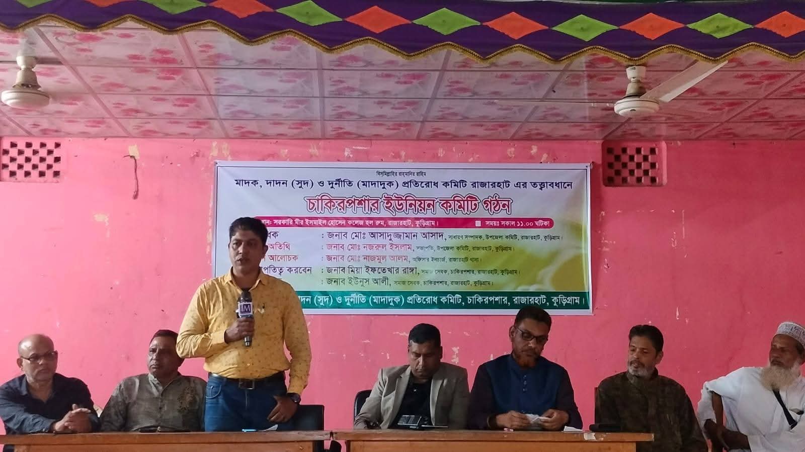 সভায় প্রধান আলোচক ছিলেন রাজারহাট থানার ওসি নাজমুল আলম। অনুষ্ঠানের উদ্বোধন করেন উপজেলা মাদক, দাদন ও দুর্নীতি প্রতিরোধ কমিটির সাধারণ সম্পাদক আসাদুজ্জামান আসাদ। প্রধান অতিথি হিসেবে উপস্থিত ছিলেন কমিটির সভাপতি নজরুল ইসলাম।