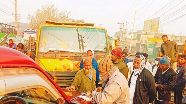 আউয়াল হোসাইন (টাঙ্গাইল):টাঙ্গাইলের ভূঞাপুরে খোলা ও ঝুঁকিপূর্ণভাবে বালু পরিবহনের দায়ে এক চালককে অর্থদণ্ড প্রদান করেছে উপজেলা প্রশাসন। এর মাধ্যমে খোলা বালু পরিবহনের বিরুদ্ধে কঠোর অবস্থানের বার্তা দিয়েছে স্থানীয় প্রশাসন। বুধবার