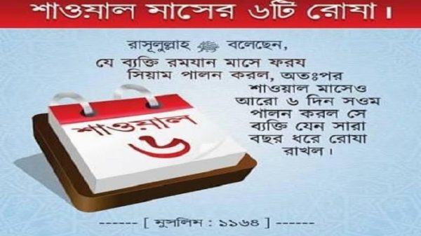 রমজনে ৩০টি রোজা করলেই শাওয়াল মাসের রোজা করতে হবে এমনটি নয় বরং শাওয়াল মাসের রোজার বিশেষ ফজিলত আছে। শাওয়াল মাসে ছয়টি রোজা রাখা সম্পর্কে রাসুলুল্লাহ (সা.) বলেন, ‘যারা রমজানে রোজা