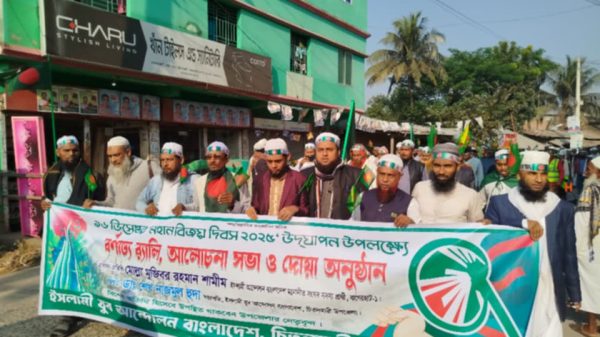 অরুণ কুমার সরকার চিতলমারী (বাগেরহাট) প্রতিনিধিঃ মহান বিজয় দিবস উপলক্ষে ইসলামী আন্দোলন বাংলাদেশ চিতলমারী উপজেলা শাখার উদ্যোগে বিজয় র্যালি।মঙ্গলবার সকালে উপজেলা সেক্রেটারি মাওলানা শাহাদাত হোসেনের সভাপতিত্বে চিতলমারী প্রধান প্রধান সড়ক