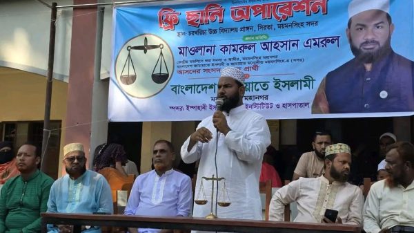 মকবুল হোসেন, ময়মনসিংহ জেলা প্রতিনিধি: ময়মনসিংহ সদরের চরখরিচা উচ্চ বিদ্যালয় প্রাঙ্গণে বাংলাদেশ জামায়াতে ইসলামী মনোনীত ময়মনসিংহ -৪ (সদর) আসনের সংসদ সদস্য প্রার্থী মাওলানা কামরুল আহসান এমরুল এর উদ্যোগে আজ ৯