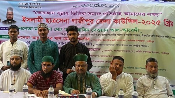মোঃ আলমগীর মোল্লা : গাজীপুরের কালীগঞ্জে ইসলামিক ফ্রন্ট বাংলাদেশ এর সহযোগী সংগঠন ইসলামী ছাত্রসেনা গাজীপুর জেলা কমিটির দ্বি-বার্ষিক কাউন্সিল অনুষ্ঠিত হয়েছে। সভাপতি মোহাম্মদ ফজলে রাব্বী, সাধারণ সম্পাদক রুহুল আমিন ও
